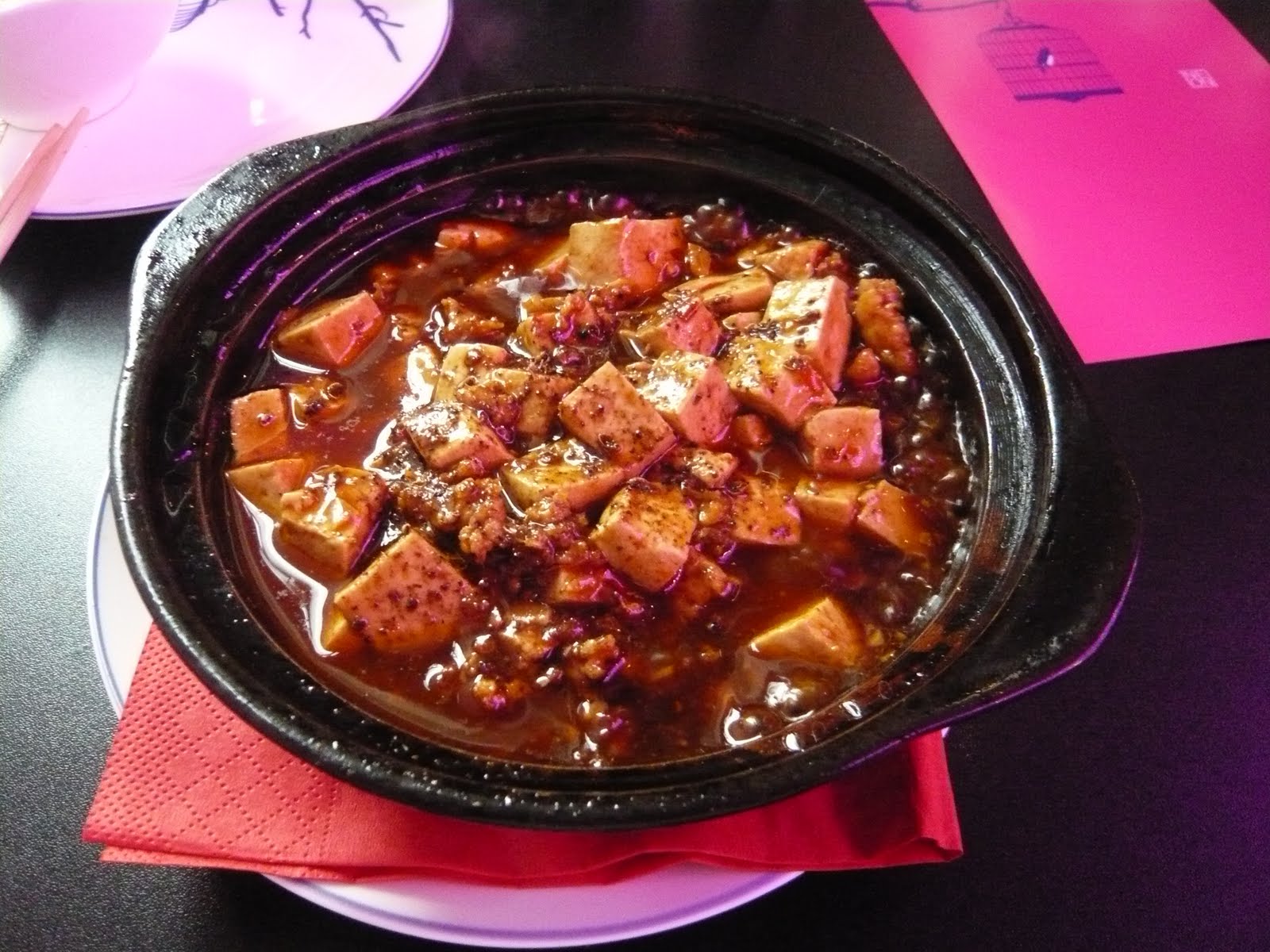 そしてもう1つは定番の”Mapo Tofu”9.5ユーロです。小さなお鍋のまま運ばれてきて、蓋を開けた時はまだぐつぐつと音を立てて豆腐が踊っていました。花椒(山椒の仲間)の味と香りが良く、本格的でした。こんな麻婆豆腐を食べたのは初めてです。私の中の麻婆豆腐のイメージをがらりと変えてくれました。でも、とっても辛いです・・・(´∀`;●)そして、少し油っぽいかな?辛いものが苦手は私は少ししか食べられませんでした。この麻婆豆腐には小ライスがついてくるのですが、あのご飯の量ではこの麻婆豆腐を食べきるのは厳しいなと思いました。辛いものが好きな人なら大丈夫かな★