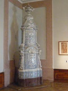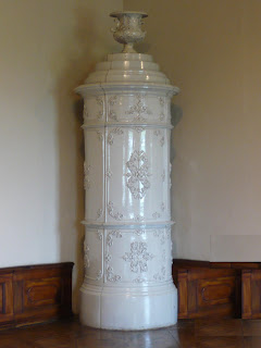暖炉は壁にくっついていて、書く部屋でデザイン、色が違いました。だいだいが部屋の角に設置してあります。見ため的に暖炉?置物なんじゃないの?と思う方もいると思いますが、実はこの暖炉は各部屋の壁の間に人が入れる空間が作ってあって、そこに使用人さんが入って壁側から蒔きなどを入れて暖める暖炉のようです。見た目も綺麗に出来るし、有害なものが直接部屋に入ってこないし考えられていますよね(^-^)