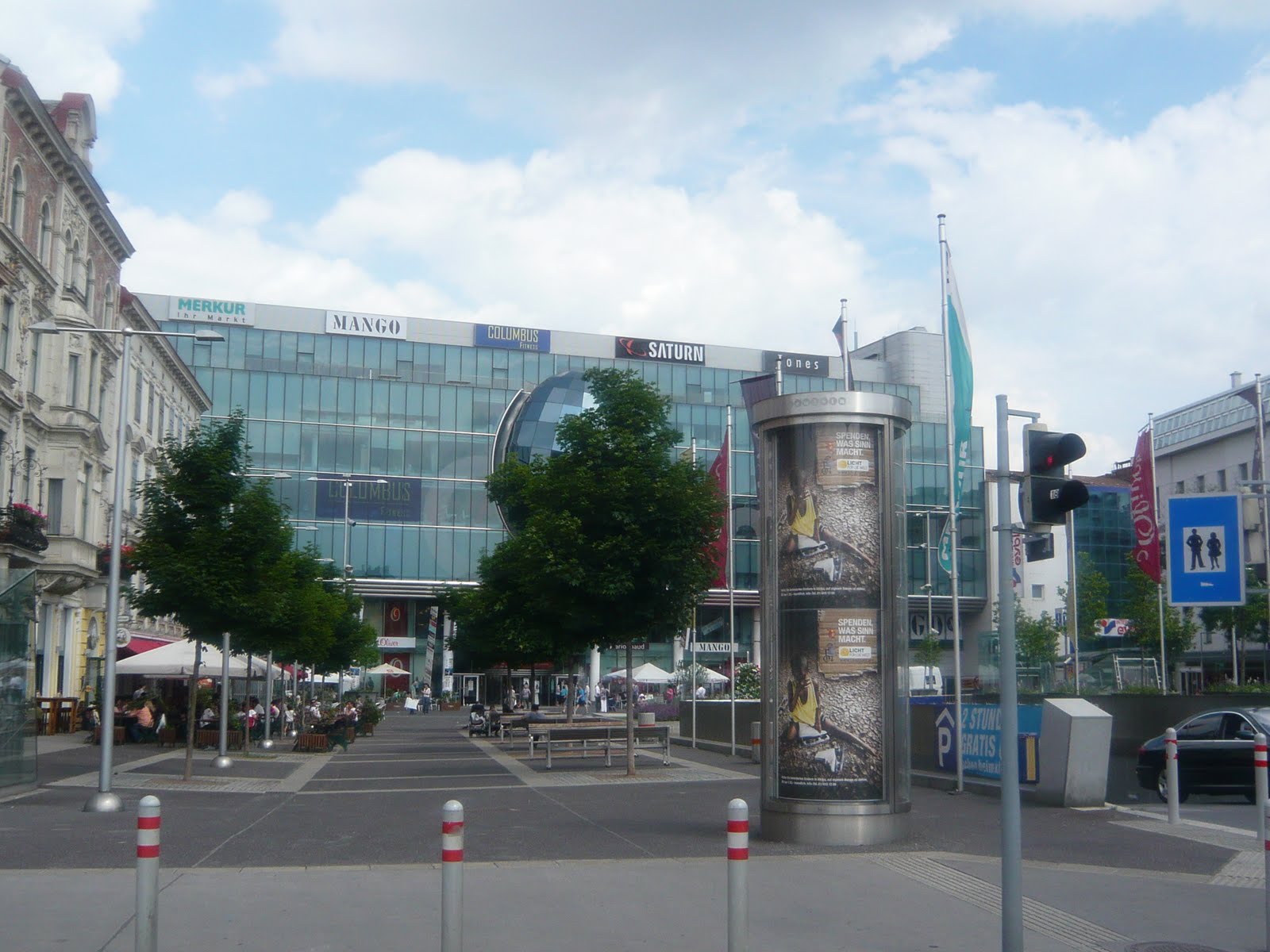 以前見つけたショッピングセンターを紹介します!上の写真が入り口の写真です。ガラス張りで大きな卵のようなオブジェがついています。場所はトラム0番の”Columbusplatz”のすぐ近くです。私達はSバーンの”Sübahnhof(ズードバーンホフ)”駅からトラムに乗り換えました。下がトラムの停留所。