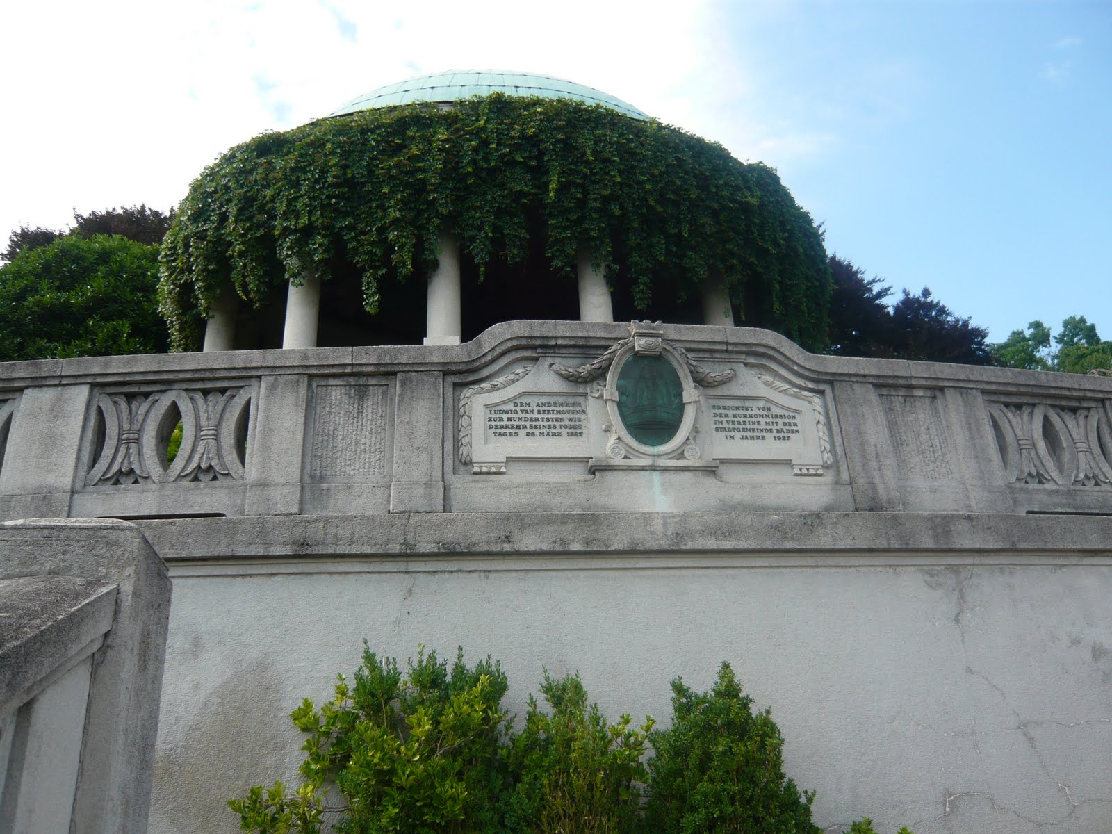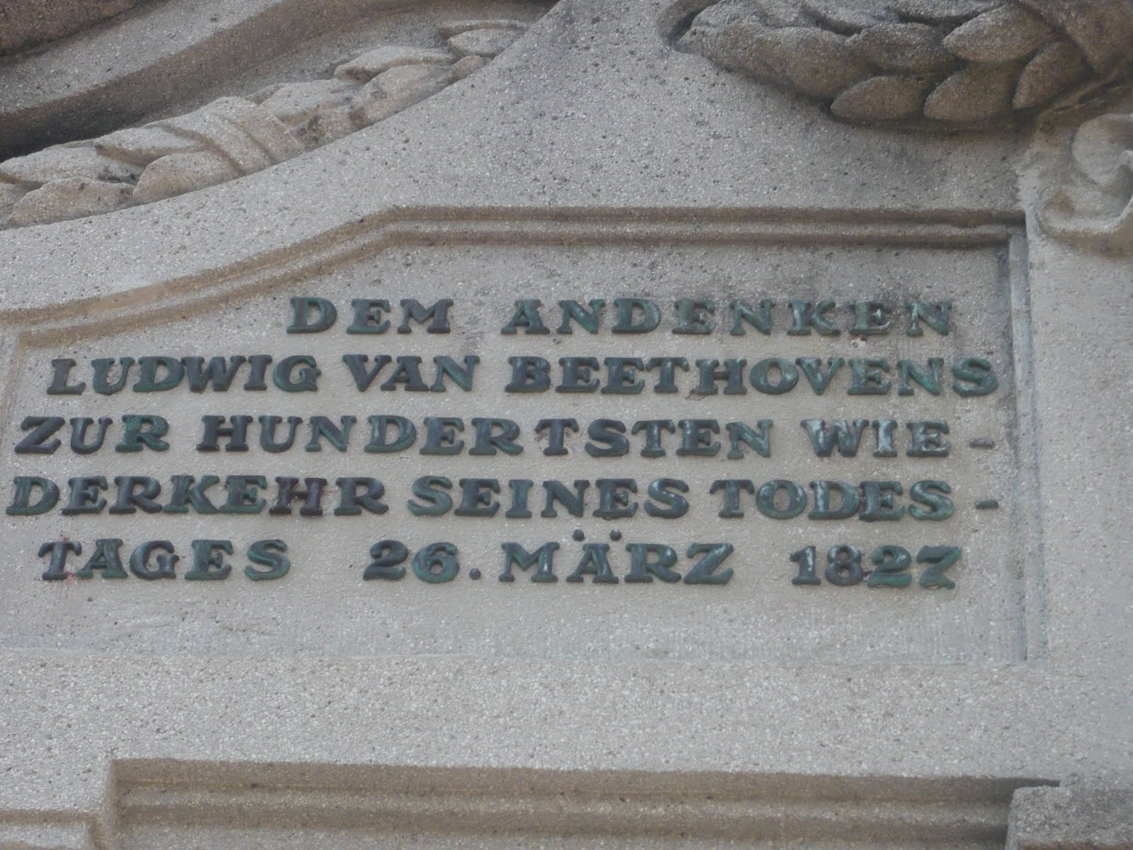 この展望台はベートーベンが亡くなってから100年後に作られたそうです。そのことが写真中央あたりの丸いレリーフの両サイドに記載してありました。(ベートーベンは1827年3月26日に亡くなっています。)