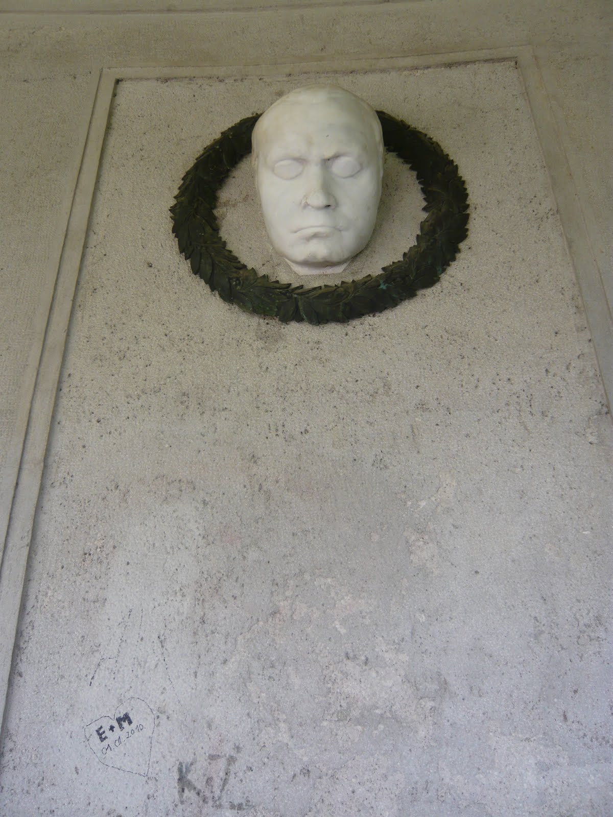 中央の壁にはデスマスクが飾ってありました。(左下の落書きがとても残念です・・・)