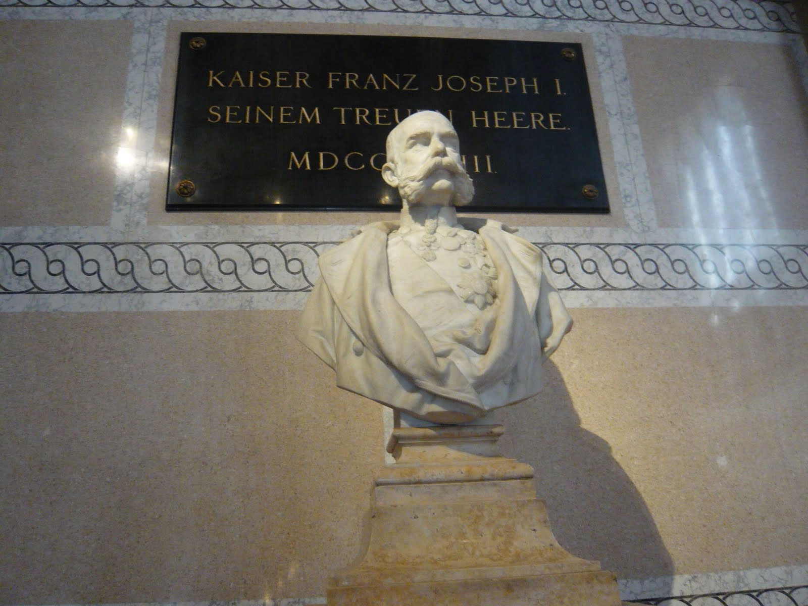階段の踊り場にはフランツ・ヨーゼフ1世の像がありました。上の窓から光が差し込んでいます。良く考えて設計されてますね!