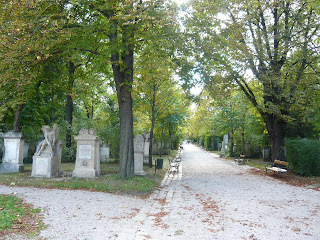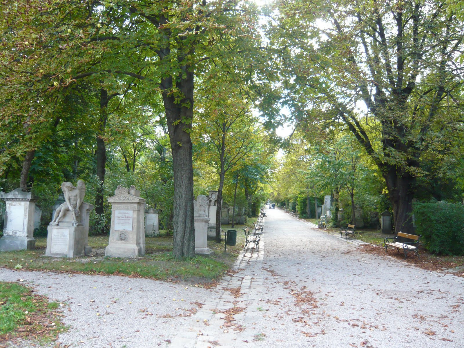 ビーダーマイヤー様式の墓地で、入り口の門からまっすぐに舗装された道が伸びています。道の両サイドにはベンチがいくつかあり休憩することも出来ます。この墓地のどこかにモーツアルトは埋葬されたそうです。でも、実際には誰も霊柩車に同行することを許されなかったので、モーツアルトが眠る場所は分からないのだそうです。妻のコンスタンツェでさえ葬儀に参加出来なかったそうです。