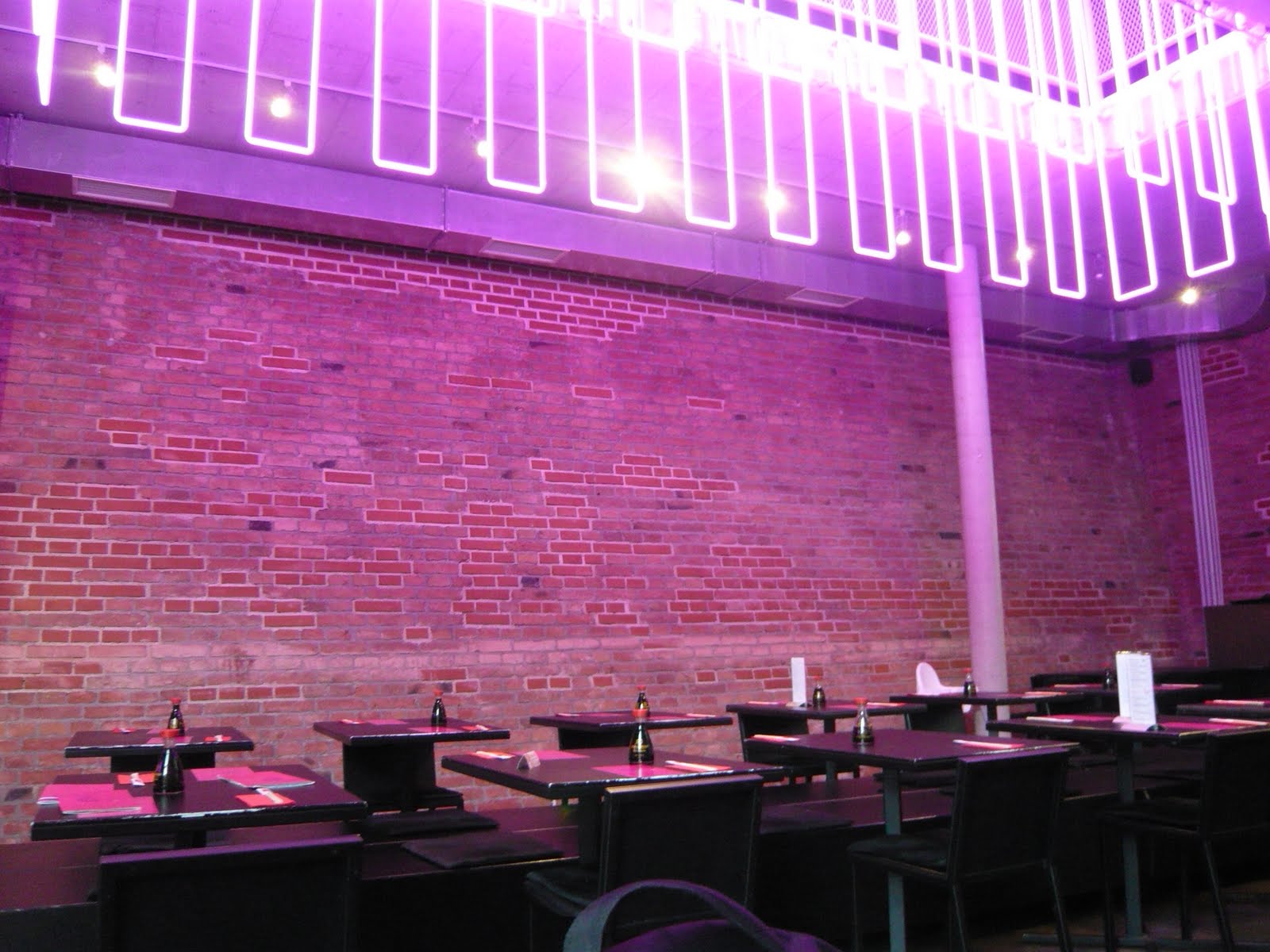 店内は天井にネオンが輝いていてモダンな雰囲気でした。中華レストランぽくないです。写真に写っている2人掛けのテーブルには人はいませんでしたが、その他の3~4人掛けのテーブルにはお客さんがいました。大人数で着ているテーブルには色々な料理があって、正直うらやましかったです(●´Д`●)。