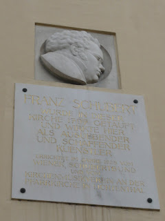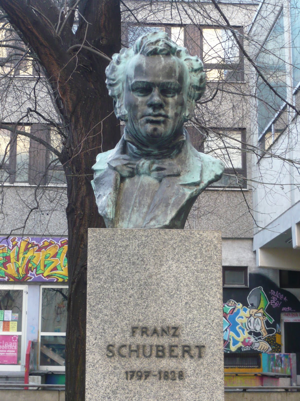 教会の向かい側にはシューベルトの像がありました。ちなみに向かいの建物は学校です。