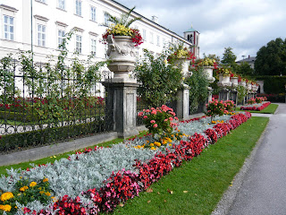 ここは、トラップ大佐邸として撮影された”フローンブルグ宮殿”です。ミラベル宮殿の次はここへ行きました。撮影は宮殿の表玄関側が使われたそうです。